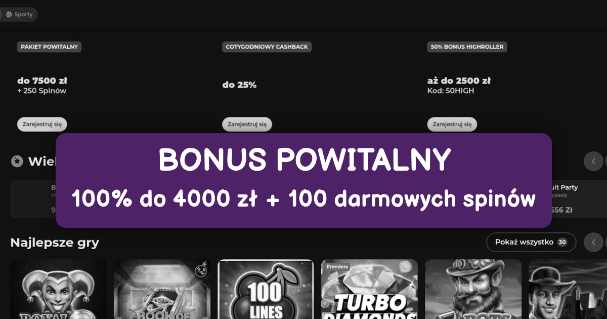 Nasz bonus powitalny to jedna z najbardziej konkurencyjnych ofert na polskim rynku hazardowym. Nowi gracze mogą otrzymać bonus o łącznej wartości do 7500 zł wraz z 250 darmowymi spinami, rozłożonymi na pierwsze trzy depozyty.